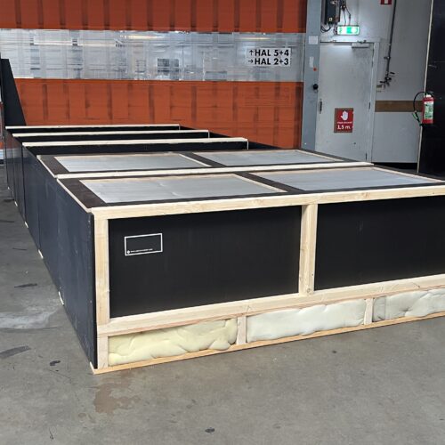Wij maken kisten in diverse formaten; de inhoud kan variëren van 1 m³ tot 3,5 m³, afhankelijk van het product. De kisten met zaad worden voor het luchtverdeelsysteem geplaatst. Dit systeem is aan de voorzijde voorzien van openingen die zich op gelijke hoogte bevinden met de kistpallets.